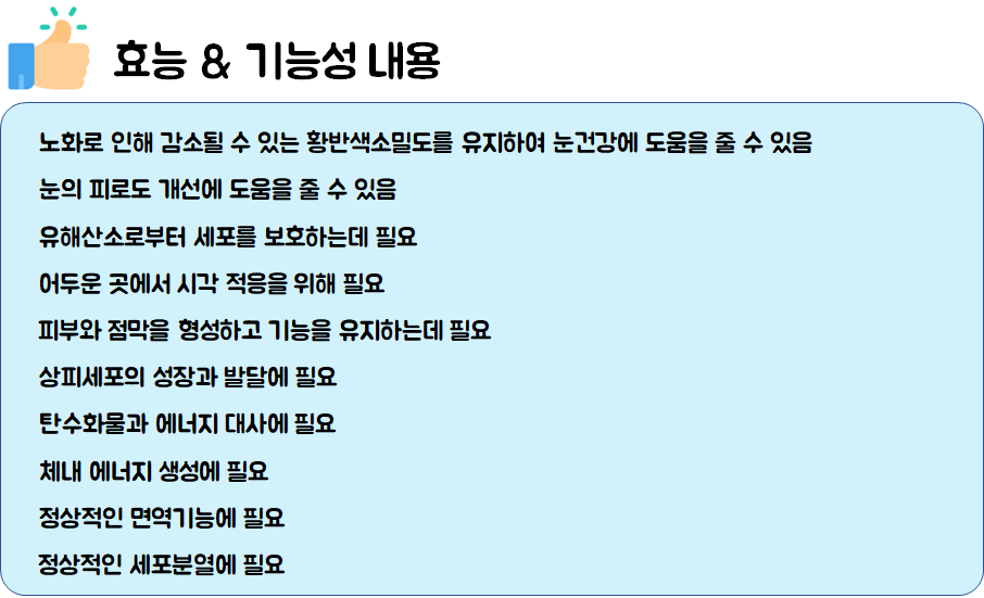 - 루테인 지아잔틴 164에는 다음과 같은 기능성 원재료가 함유되어 있습니다.