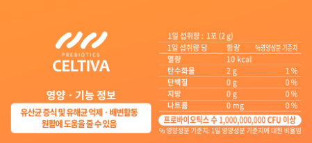 다음은 셀티바 프로바이오틱스의 성분 정보입니다.