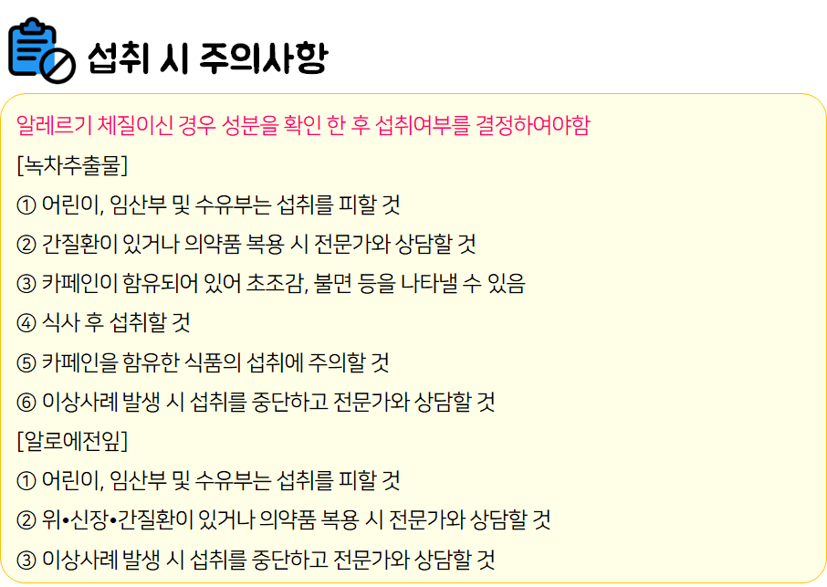식품 섭취 도중 부작용이나 이상반응이 나타나면 섭취를 멈추고 전문가 혹은 의사와 상담하시는 것이 좋습니다.