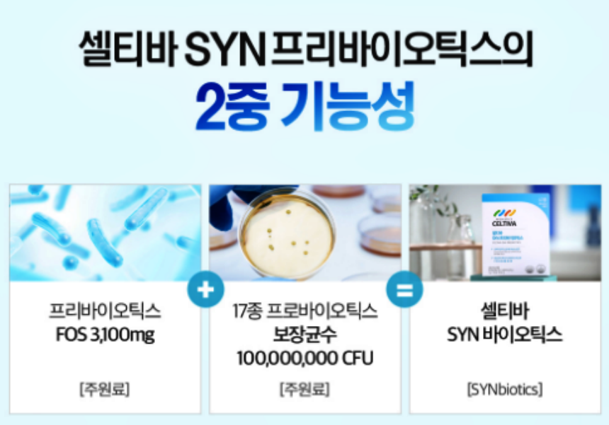 오늘은 셀티바에서 출시된 신 프리바이오틱스에 대해서 다뤄보려고 하는데, 이 포스팅은 셀티바 신프리바이오틱스의 성분 정보, 효능, 섭취 시 주의사항 등을 다룰 예정이니 A to Z 꼼꼼하게 읽으시고 보다 안전하고 건강하게 섭취하시기 바랍니다.
