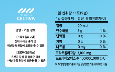 다음은 셀티바 신프리바이오틱스의 성분 정보입니다.