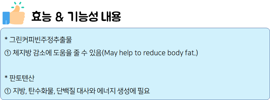 - 셀티바 그린커피빈에는 다음과 같은 기능성 원재료가 함유되어 있습니다.