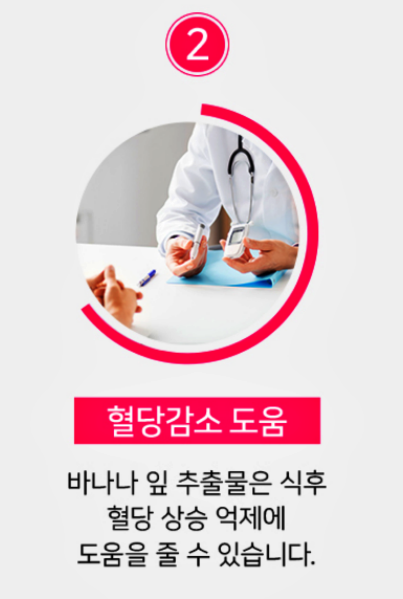 또한 바나나 잎 추출물은 식후 상승하는 혈당 수치를 잡아주는데 도움을 줄 수 있어 혈당감소에도 효과적이고, 비타민c가 함유되어 있어 체내에 녹아있는 산소 찌꺼기인 유해산소로부터 세포를 보호해 줍니다.