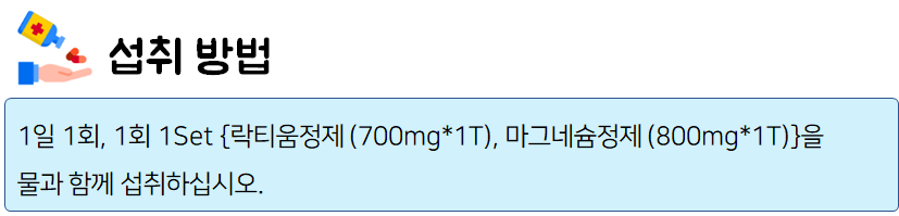 : [락티움정제] 점박이를 함유한 흰색 장방형의 흰색 제피정제 [마그네슘정제] 흰색 장방형의 연한 자줏빛 분홍색 제피정제