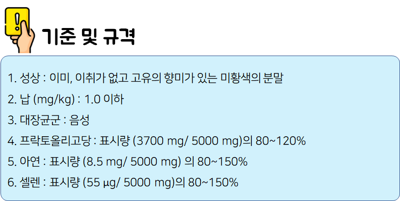 : 이미, 이취가 없고 고유의 향미가 있는 미황색의 분말