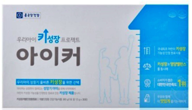 오늘 제가 다룰 건강기능식품은 어린이 키성장 영양제 아이커입니다.