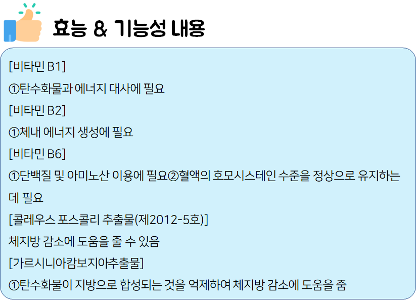 - 콜레우스 포스콜리에는 다음과 같은 기능성 원재료가 함유되어 있습니다.