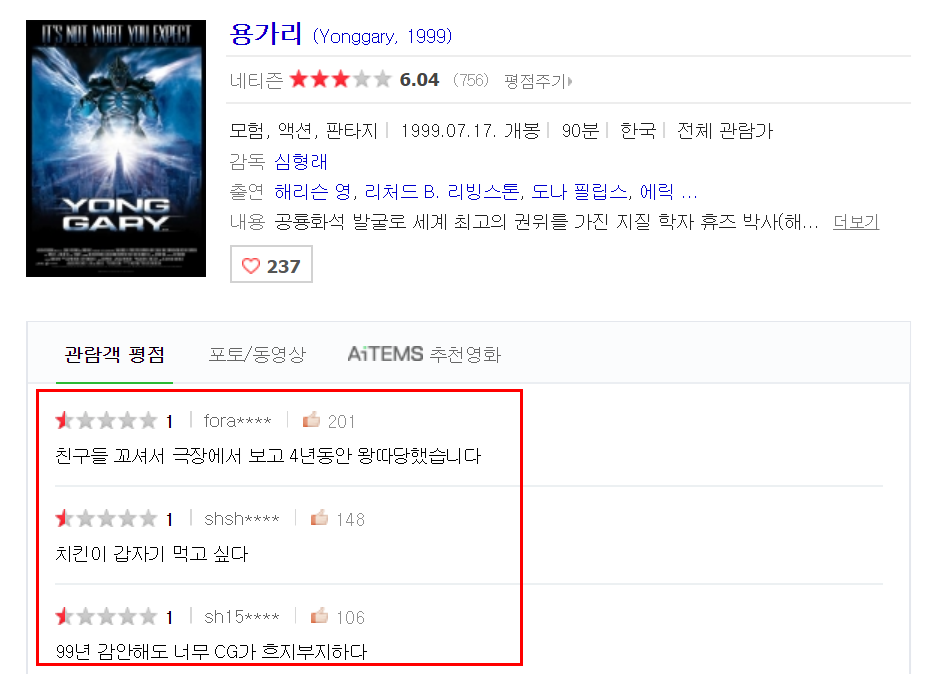 엄청난 혹평이 이어졌던 영화 '용가리'