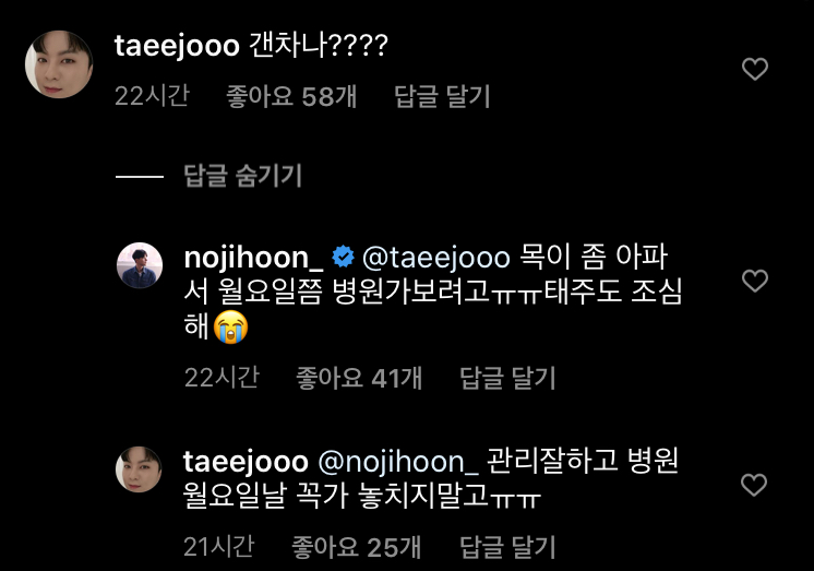 노지훈 빗길사고 소식에 동료 트로트 가수 나태주는 “괜찮아? 관리 잘하고 월요일에 병원 놓치지 말고 꼭 가”라며 걱정했습니다.