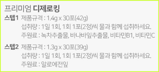 다음은 디제로킹 다이어트 성분 정보입니다.