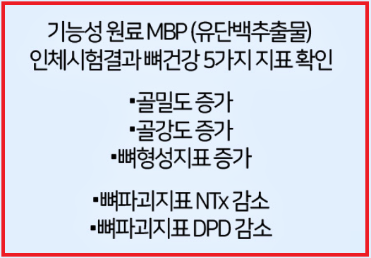 - 뼈엔 엠비피 MBP에는 다음과 같은 기능성 원재료가 함유되어 있습니다.